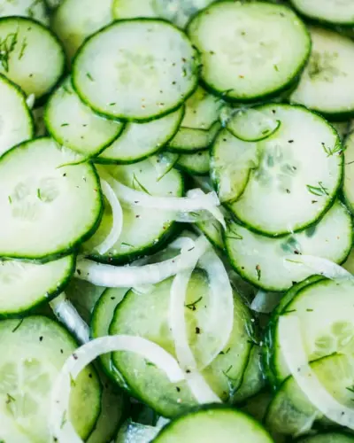 또 다른 고전적인 딜 레시피는 다음과 같습니다: 오이 샐러드! 그것은 그래서 상쾌함: 사실, 먹는 것을 멈추기가 어렵습니다! 사워 크림으로 만든 크리미한 오이 샐러드를 맛보세요. 사워 크림을 조금 추가하면 거부할 수 없을 만큼 크리미한 소스가 만들어집니다. 아니면 클래식을 만드세요. 식초를 곁들인 오이 샐러드 . 여름 분위기가 나지만, 이 맛있는 샐러드는 일년 중 언제라도 잘 먹습니다.