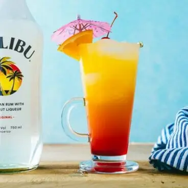 여기 맛있는 열대 풍미가 가미되어 시각적으로 놀라운 말리부 음료인 말리부 선셋(Malibu Sunset)이 있습니다! 이 레이어드 칵테일은 코코넛 럼, 파인애플 주스, 오렌지 주스를 곁들여 파티를 돋보이게 합니다. 추가하다 석류 시럽 그리고 그것은 일몰의 색상 그라데이션으로 겹쳐집니다! 이 상쾌한 해변 음료 순수한 기쁨입니다.