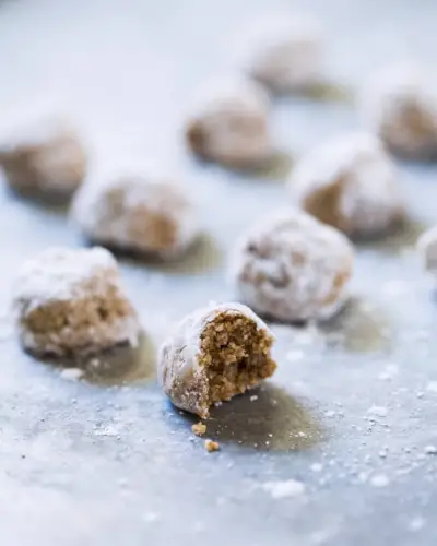 마지막으로 쉬운 쿠키 레시피는 러시아 차 케이크입니다! 그리고 아늑한 차이 향신료가 곁들여져 있어요! 카다몬은 여기 쇼의 스타입니다. 이것이 차이 스파이스에 친숙한 맛을 주는 이유입니다. 이 쿠키는 자연적으로 글루텐이 없지만, 여러분은 그것을 알지 못할 것입니다: 완벽하게 부서지고 입에서 녹는 질감을 가지고 있습니다!