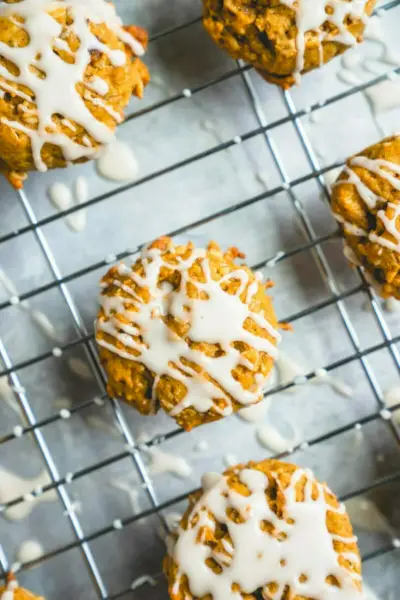 이 쉬운 호박 오트밀 쿠키는 기본적으로 오트밀 크림 파이 맛이 납니다! 영양이 풍부한 압착 귀리와 전통적인 호박 향신료인 계피, 생강, 육두구로 만들어졌습니다. 케이크 위의 아이싱: 위에 올려져 있어요 1분 가루 설탕 아이싱 레이스 룩을 연출해보세요. 저항하고 하나만 먹을 수 있는지 확인하십시오!