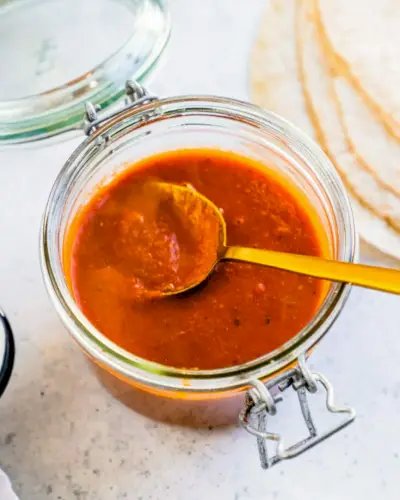 엔칠라다 소스도 잊지 마세요! 이 홈메이드 엔칠라다 소스는 너무 맛있고 단 25분 밖에 걸리지 않습니다! 방부제가 전혀 들어있지 않은 천연 제품이며 비건 채식과 글루텐 프리 제품입니다. 엄청난 맛을 얻으려면 몇 가지 재료만 있으면 됩니다. 이 풀바디 소스는 톡 쏘는 맛이 나며, 계속 먹고 싶어질 것입니다.