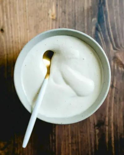 비건 소스 레시피 중 1위는 캐슈 크림 소스입니다! 부드럽고 크리미한 이 소스는 혼합된 캐슈넛으로 만들어지며 비건 사워 크림이나 마요네즈와 잘 어울립니다. 칠리를 덩어리로 얹고 수프에 저어 크림처럼 만들거나 연녹색 고수 소스, 비건 나초 치즈 또는 비건 알프레도와 같은 다른 소스의 기초로 사용하세요. 끝없이 다재다능하고 맛이 너무 풍부하여 첫 번째 맛을 본 후 새로운 선택이 될 것입니다.
