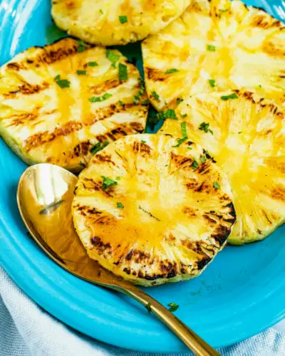구운 파인애플은 여름 식사의 최고의 마무리입니다! 파인애플은 그 자체로 톡 쏘는 맛이 나고 육즙이 많습니다. 스모키한 향이 스며들고 그릴에서 따뜻해지는 것을 상상해보세요! 꿀을 뿌리고 신선한 민트를 얹습니다. 아니면 그 위에 올려 녹인 바닐라 아이스크림과 함께 드세요. 구운 코코넛 .