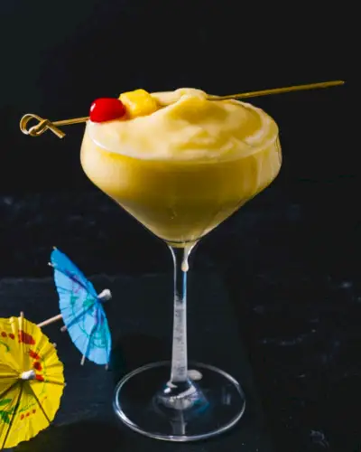 바나나 다이키리를 맛보세요! 이 스핀은 클래식에 속합니다 다이키리 우리가 가장 좋아하는 것 중 하나야 냉동 음료 손님에게 깊은 인상을 남기는 이유는 다음과 같습니다. 정말 거부할 수 없는 일입니다! 숙성된 럼의 신나는 라임, 바닐라, 오크 향과 마무리에 약간의 오렌지 리큐어가 더해진 순수한 바나나 맛이 특징입니다.