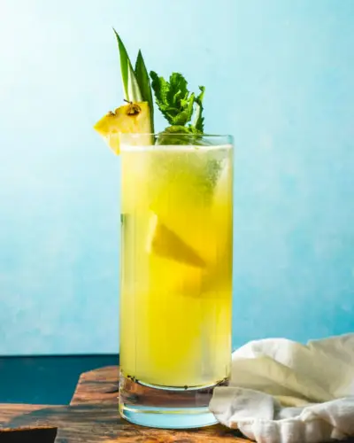 여기 우리가 지금까지 시도하지 않았다는 것을 믿을 수 없는 맛있는 화이트 럼 칵테일이 있습니다. 파인애플 모히또! 믹스에 열대 파인애플을 추가하면 풍미의 교향곡이 됩니다! 과일의 달콤한 타트는 톡 쏘는 라임과 달콤하고 시원한 민트의 균형을 완벽하게 유지합니다.
