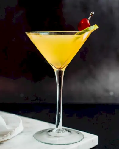 여기 독특하고 맛있는 새콤달콤한 칵테일이 있습니다: 노란 새! 이 밝은 노란색 음료는 약간의 블링블링이 더해진 신맛이 나는 칵테일입니다. 바닐라와 감초 향이 은은하게 마무리됩니다. 세련미는 이 레시피에 어울리는 밝은 노란색 이탈리아 리큐어인 갈리아노에서 나옵니다.