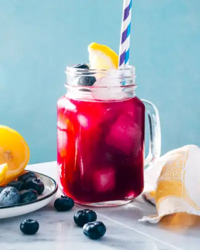 여기 재미있는 블루베리 음료 레시피가 있습니다: 블루베리 레모네이드! 이 달콤한 타르트 음료에 인기 있는 베리를 추가하면 베리의 뉘앙스와 균형을 이루며 선명한 보라색을 얻을 수 있습니다. 제철과일을 활용하는 방법이 참 재미있네요! 당신은 또한 그것을 만들 수 있습니다 블루베리 보드카 레모네이드 !