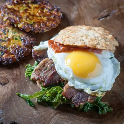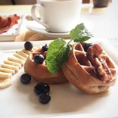 콜럼버스, 오하이오 chain Northstar 커피, has something for vegans, vegetarians, and wholesome food seekers alike. The stars of their lunch and dinner menu are their seasonal salads and house burger, which is made completely of organic black beans, brown rice, and beets! If you find yourself there before noon, check out the mint (!!!) iced cold-brewed coffee and pair it with the single ricotta pancake. Anywhere that helps its customers indulge their sweet tooth while keeping portions in check gets an A+ in our book.