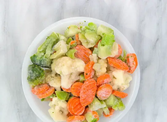 냉동 야채 가방에 개구리