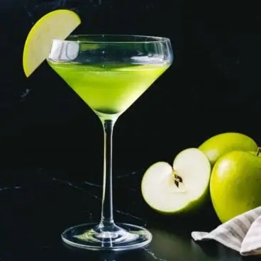 - 걸러내기 및 장식: 마티니 잔에 걸러냅니다. 원하는 경우 녹색 사과 조각으로 장식합니다(이 장식은 1996년 원본 레시피에 포함되었습니다!).