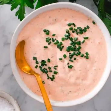 하지만 이 소스에서 우리가 가장 좋아하는 것은 사워 크림입니다. 풍부하고 크리미하며 디핑과 드리즐링에 적합합니다.