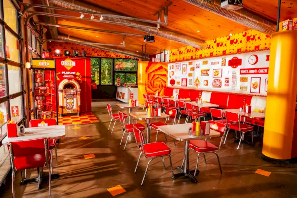뉴욕시에서 차로 약 2시간 거리인 뉴욕 우드스톡에 위치한 Cheez-In Diner는 지난해 브랜드 활성화로 입소문을 타고 유명해졌습니다. 캘리포니아의 Cheez-It Stop은 Cheez-It 크래커 분배 펌프를 갖춘 주유소를 모방한 반면, 일주일 동안만 개장되는 이 새로운 몰입형 길가 체험은 Cheez-It을 가미한 클래식 식당 메뉴로 가득 차 있습니다. 메뉴의 짭짤한 측면에 대한 개요는 다음과 같습니다.