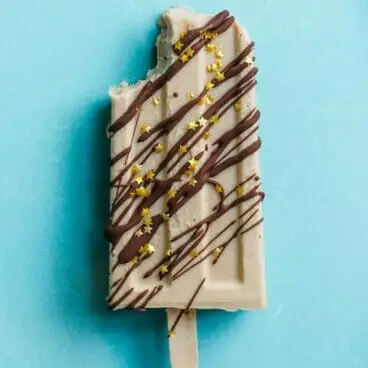비건 디저트와 땅콩버터 레시피 목록에 땅콩버터 아이스캔디를 추가해보세요! 비건 초콜릿 드리즐과 식용 글리터를 곁들여 마무리합니다.