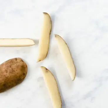 구운 감자 웨지의 경우, 가장 좋은 웨지 크기를 만들기 위해 길이가 2~3인치인 노란색 또는 빨간색의 밀랍 감자를 사용하는 것을 좋아합니다. 또는 대형 스테이크 감자튀김의 경우 중대형 러셋 감자를 사용할 수 있습니다.