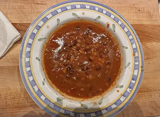 맛: 인상적인! 그것은 위대한 칠리입니다. 그것은 David Julio의 인기있는 멕시코 네트워크의 콩과 거의 비슷합니다. 이것은 의심 할 여지없이 콩 기반 칠리이지만, 내가 얻는 것은 칠리 맛의 부드럽고 정확한 표현입니다. 나는 후추 맛, 콩에 좋은 질감, 아마도 계피 힌트를 얻습니다.