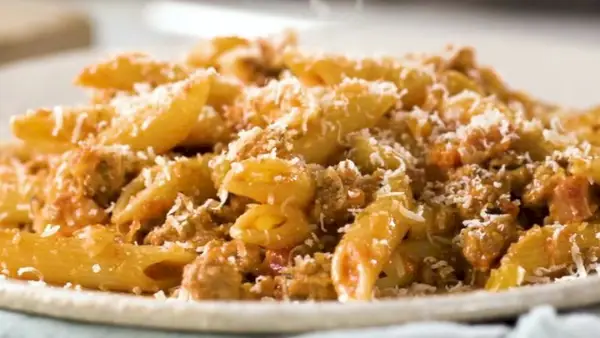 파스타 볼로네제 소스는 너무 걸쭉하기 때문에 이탈리아인들은 일반적으로 파스타를 스파게티와 함께 먹지 않습니다. 대신, 우리는 소스에 펜네 리가테를 곁들여 제공합니다. 펜네 리가테는 견고한 질감을 더 잘 유지합니다.