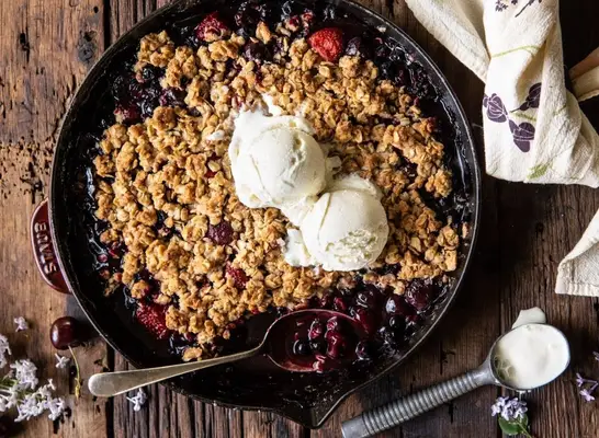 그렇다면이 두 디저트의 차이점은 무엇입니까? 부스러기는 '기본적으로 바삭 바삭한 오트밀 마이너스 또는 견과류'입니다. 스튜어트의 빅토리아 스펜서. 이 디저트가 오븐에서 굽기 전에 부스러기는 과일에 밀가루, 버터 및 갈색 설탕이 간단하게 혼합되어 있습니다. (다시, 서로 용어를 사용하는 사람들이 있습니다.)