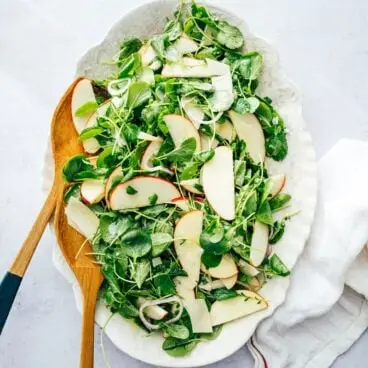 나뭇잎이 잔뜩 쌓여있어 물냉이 ? 건강한 녹색 맛을 신성하게 만드는 좋은 방법은 다음과 같습니다. 사과를 곁들인 물냉이 샐러드 ! 이 씁쓸한 잎채소를 레몬, 사과, 풍미 가득한 파마산 치즈와 함께 먹으면 한입 더 먹고 싶어질 것입니다! 달콤한 사과, 톡 쏘는 감귤류, 얇은 소금이 물냉이와 아름답게 균형을 이루어 신선하고 생동감 넘치는 반찬을 만들어줍니다. 만드는 방법과 이 잎이 많은 녹색으로 작업하는 방법에 대한 자세한 내용은 다음과 같습니다!